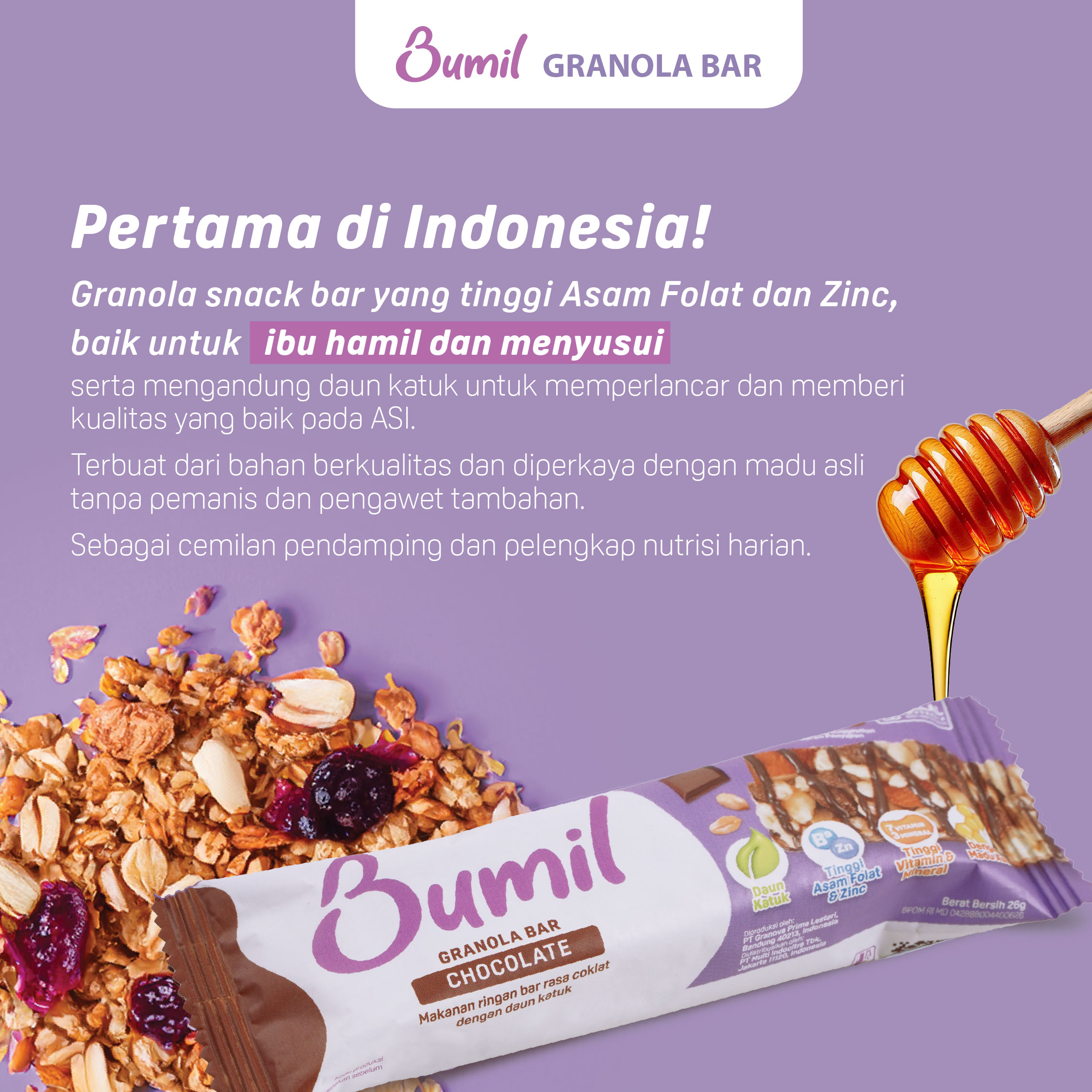 Granola Bar dengan rasa Cokelat.